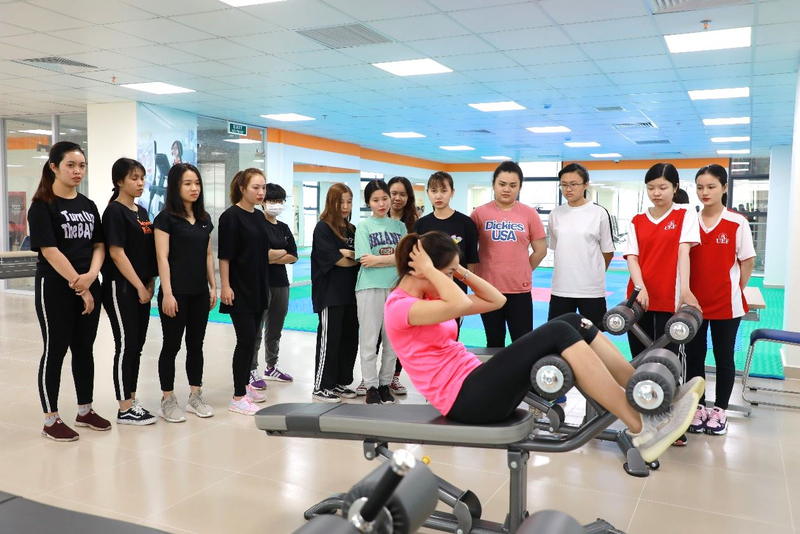 Hoàn toàn khác với hình dung về không gian học giáo dục thể chất ngoài trời, nắng nóng,… học tại hệ thống phòng Gym của trường, sinh viên được tập luyện trong không gian mở, view "sang chảnh", phòng tập mát mẻ với hệ thống điều hòa phủ rộng.
