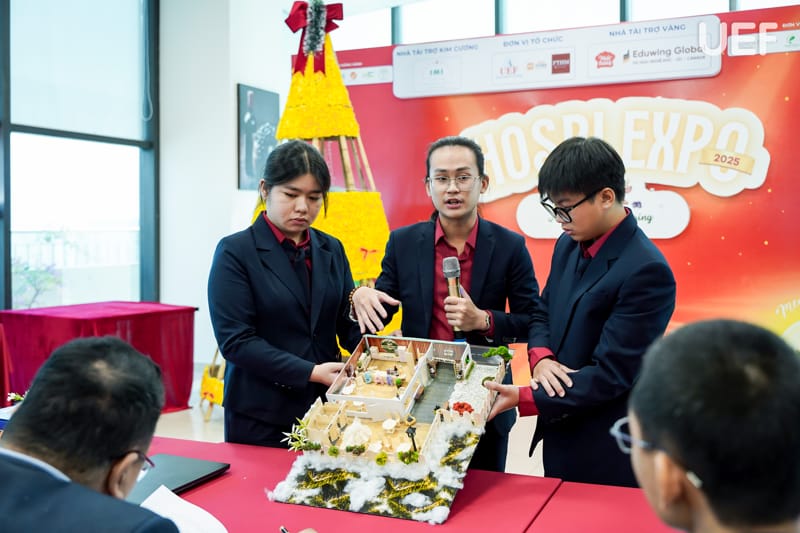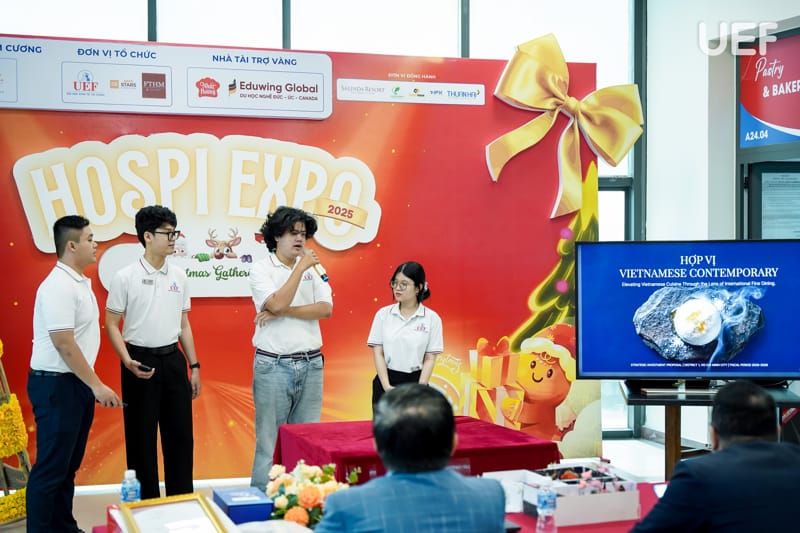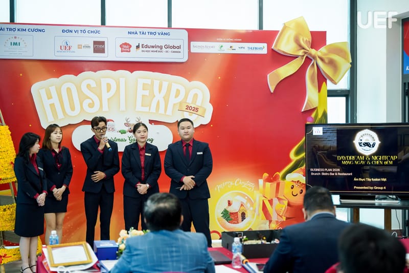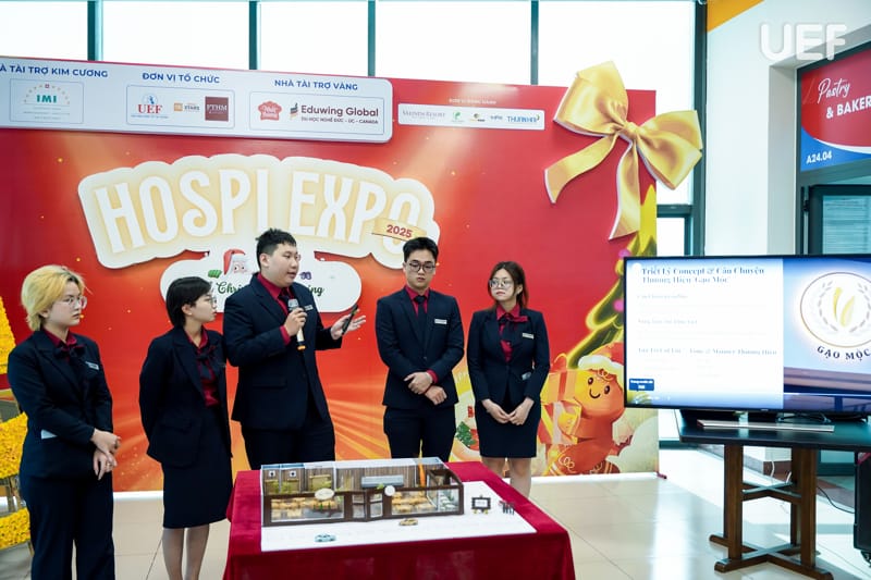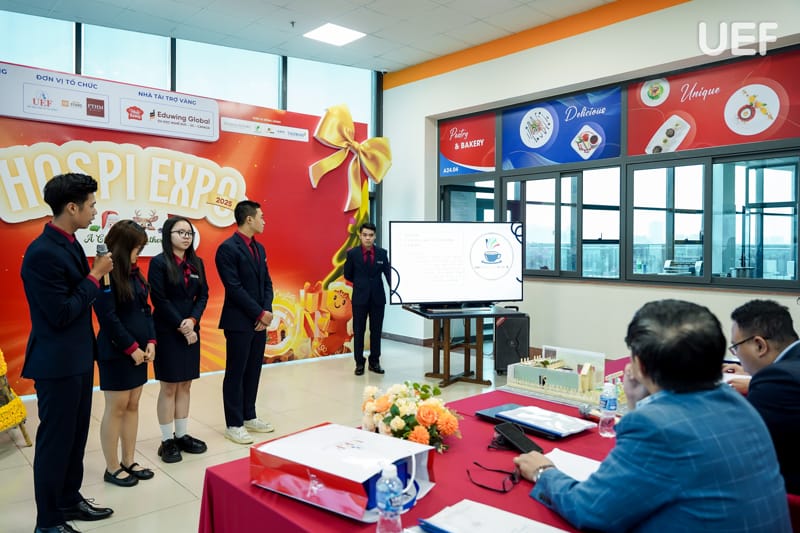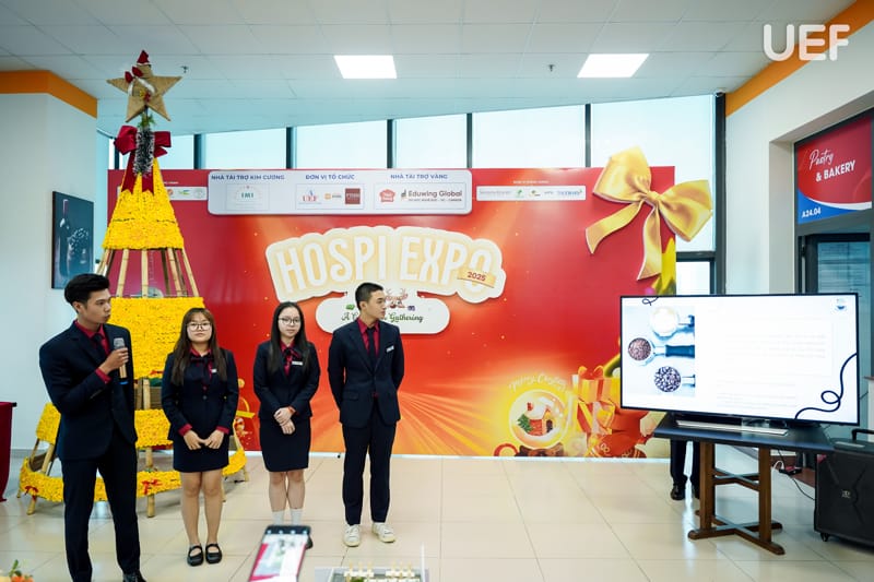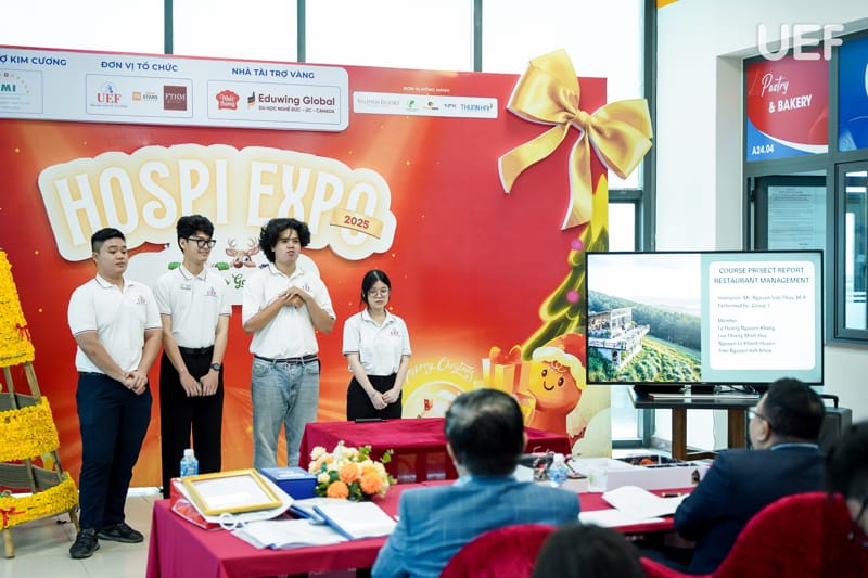Với mục tiêu tạo điều kiện để sinh viên vận dụng kiến thức chuyên môn vào thực tiễn, sáng ngày 19/1, Khoa Quản trị du lịch - Khách sạn UEF đã tổ chức buổi công bố sản phẩm học phần Quản trị nhà hàng với chủ đề “Từ tư duy khởi nghiệp đến mô hình kinh doanh thực tiễn”. Hoạt động là dịp để sinh viên thể hiện năng lực sáng tạo, tư duy kinh doanh và khả năng xây dựng mô hình nhà hàng mang tính ứng dụng cao.