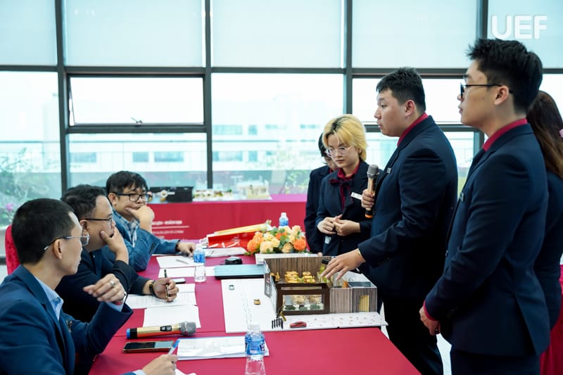 Dưới sự hướng dẫn của giảng viên, sinh viên được chia thành 7 nhóm, lần lượt thuyết trình về các dự án kinh doanh nhà hàng do nhóm xây dựng, từ ý tưởng, concept, định vị thương hiệu đến mô hình vận hành.