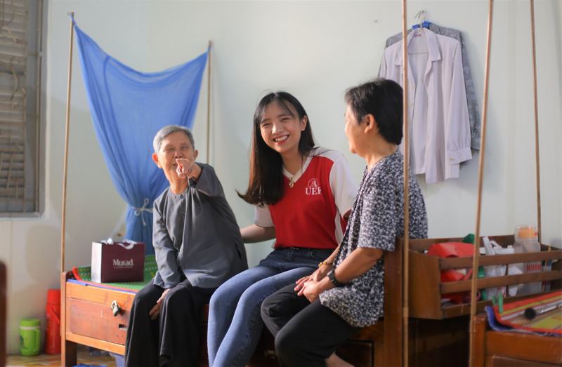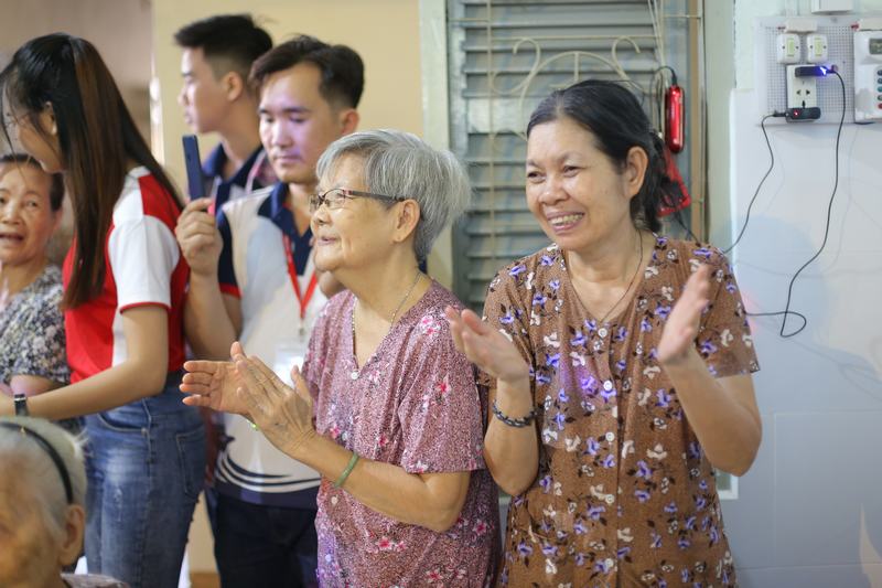 Hình ảnh gần gũi, tình cảm giữa các cụ và sinh viên Nhà UEF