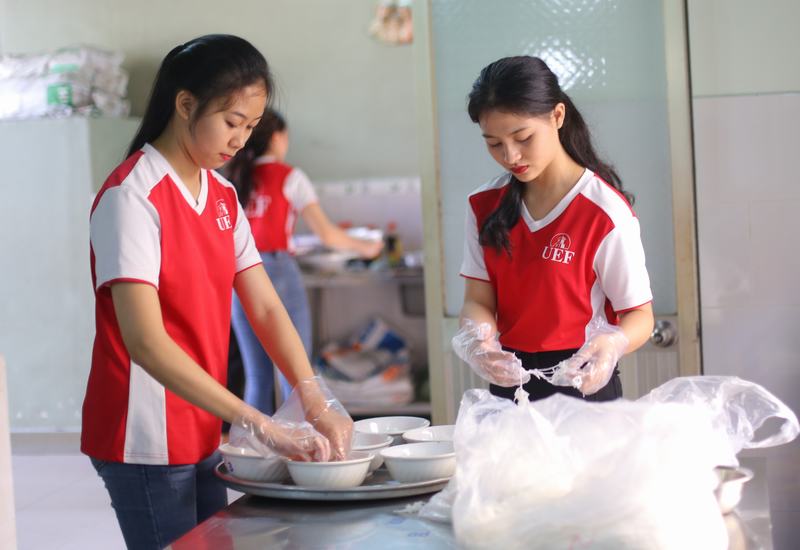 Các thí sinh Miss UEF tự tay chuẩn bị bữa ăn trưa cho các cụ