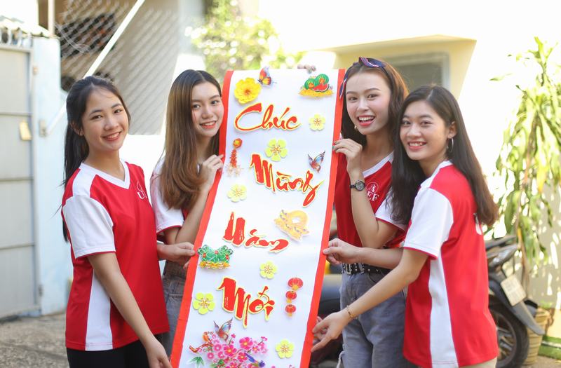 Các bạn cũng bắt tay vào dọn dẹp và trang trí cho không gian mái ấm ngập tràn những sắc hoa mai, hoa đào, chào đón một năm mới nhiều niềm vui và hạnh phúc. Phần cuối chương trình, các bạn cùng thể hiện tài năng ca hát, góp vui bằng những giai điệu vui tươi phù hợp với những ngày xuân đang đến gần. Các cụ cũng dành nhiều tình cảm cho các nữ sinh UEF bởi tấm chân tình, sự lễ phép và tính cách năng động.