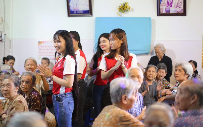 Niềm vui, nụ cười của các cụ là niềm hạnh phúc mà mỗi thí sinh Miss UEF mong muốn nhận về sau hành trình "cho đi"