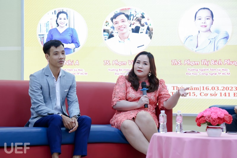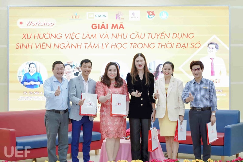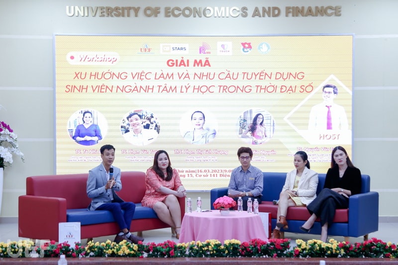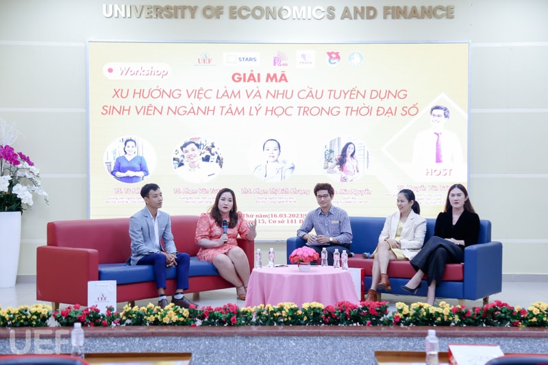 Workshop diễn ra với sự đồng hành của bốn khách mời là TS. Phạm Văn Tuân - Trưởng Bộ môn Tâm lý học, Đại học Văn Lang; TS. Tô Nhi A - Giảng viên ngành Tâm lý học UEF; ThS. Phạm Thị Bích Phượng - Trưởng ngành Tâm lý học, Đại học Công nghệ TP. HCM (HUTECH); Chị Mia Nguyễn - Giám đốc Công ty Ladies of Vietnam. Đóng vai trò host của chương trình là TS. Nguyễn Văn Tường - Phó Giám đốc Trung tâm Tham vấn tâm lý và Hỗ trợ pháp luật, Trưởng ngành Tâm lý học UEF. Các diễn giả đã mang đến cho UEFers góc nhìn đầy đủ và rõ nét về cơ hội, thách thức cùng các hướng phát triển của lĩnh vực tâm lý học trong tương lai.