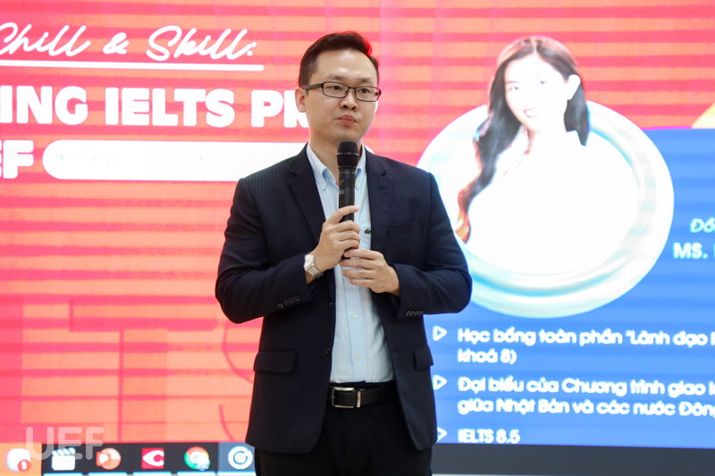 Mở đầu buổi chia sẻ, TS. Đỗ Hữu Nguyên Lộc nhấn mạnh những giá trị mà UEF mang lại, về những chứng chỉ quốc tế cũng như sứ mệnh xây dựng cộng đồng học thuật quốc tế cho sinh viên: “Kỹ năng giao tiếp tiếng Anh tốt sẽ giúp sinh viên tự tin hơn trong các cuộc trò chuyện, thuyết trình và trong các hoạt động học tập hàng ngày. Từ đó tạo điều kiện thuận lợi cho sự phát triển toàn diện. Do đó, IELTS không chỉ là một công cụ đánh giá năng lực tiếng Anh mà còn là một bước đệm quan trọng giúp sinh viên phát triển trong môi trường quốc tế”.
