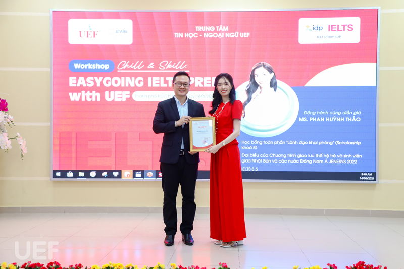 Trước khi kết thúc buổi chia sẻ, diễn giả Phan Huỳnh Thảo mong muốn các bạn sinh viên hiểu rõ rằng việc nâng cao kỹ năng nghe, nói trong IELTS không chỉ là một quá trình học tập mà còn là một hành trình phát triển toàn diện các kỹ năng ngôn ngữ và giao tiếp. Thông qua những phương pháp mà diễn giả đã chia sẻ, tin chắc rằng UEFers đã có thêm bí quyết để vượt qua kỳ thi IELTS với điểm số tốt nhất.