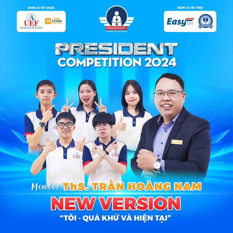 Nhóm 3 vòng Thực chiến President Competition 2024 được ThS. Trần Hoàng Nam - Phó Trưởng khoa Quản trị kinh doanh tư vấn, hướng dẫn; gồm các thí sinh: Nguyễn Thị Nhất Hoàng - Khoa Kinh tế, Hà Thế Vân - Khoa Quản trị kinh doanh, Nguyễn Tú - Khoa Kinh tế, Nguyễn Thị Thanh Hằng - Khoa Kinh tế và Phan Quỳnh Nhi - Khoa Kinh tế.