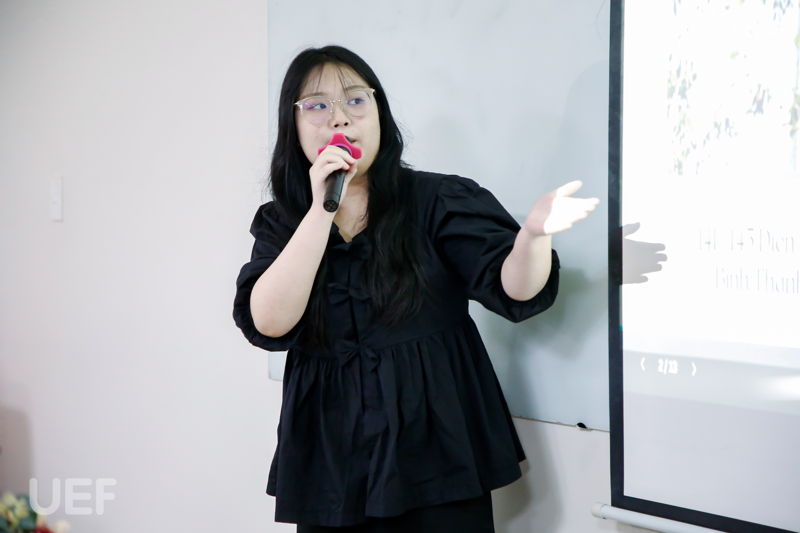 6 bạn thí sinh bắt đầu phần dự thi của mình một cách tự tin. Mỗi phần thi thể hiện được sự am hiểu và niềm tự hào của các bạn về “ngôi nhà thứ 2” của mình là UEF. Nhiều mục tiêu, định hướng được đặt ra cho chính bản thân mình trong năm học mới. Không chỉ mang ra dự thi, top 6 còn chứng tỏ được sự quyết tâm chinh phục những gì đã đề ra đúng hạn và đúng kế hoạch. Sau phần trình bày, các bạn cũng khéo léo xử lý các câu hỏi từ giám khảo và được đánh giá cao.