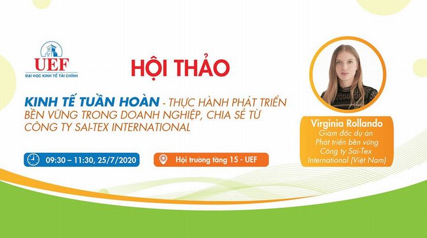 Báo cáo của Trung tâm Kết nối cộng đồng sẽ tổng kết một năm học triển khai các dự án service - learning tại UEF. Kế tiếp, buổi hội thảo “Thực hành phát triển bền vững” của vị diễn giả rất trẻ, người quản lý các dự án xã hội của Công ty Sai-tex International sẽ hé lộ khái niệm mới “Kinh tế tuần hoàn” - một trong những xu hướng phát triển của các tập đoàn lớn trong những năm gần đây.