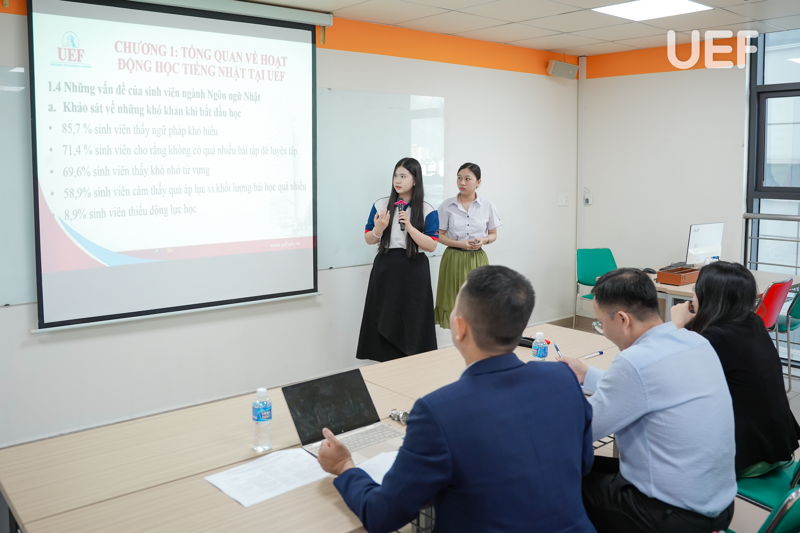 Sáng ngày 25/4, ngành Ngôn ngữ Nhật, Khoa Ngôn ngữ và Văn hóa quốc tế UEF đã tổ chức buổi nghiệm thu đề tài nghiên cứu khoa học (NCKH) sinh viên năm học 2024 - 2025, tiếp nối chuỗi hoạt động học thuật sôi nổi của Nhà trường thời điểm hiện tại. Buổi nghiệm thu ghi nhận kết quả học thuật của sinh viên sau quá trình nghiên cứu nghiêm túc, cũng là cơ hội để các bạn lắng nghe góp ý, chia sẻ từ Hội đồng chuyên môn.