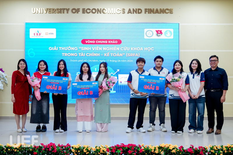 - Giải B gồm các đề tài: Mô hình thanh toán “Buy now Pay later” ở Việt Nam trong xu thế hội nhập; Báo cáo môi trường, xã hội và quản trị (ESG) tác động đến hiệu quả hoạt động của các doanh nghiệp tại các quốc gia Đông Nam Á; Nghiên cứu yếu tố tác động đến hành vi tham gia Thị trường Chứng khoán của sinh viên khối Kinh tế.