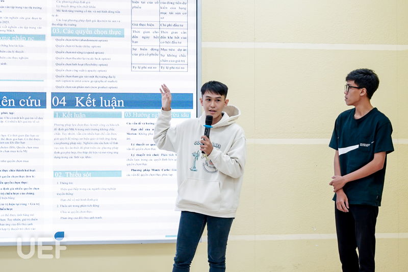 Kết thúc phần trình bày của các bạn sinh viên, các giám khảo sẽ đưa ra nhận xét, đánh giá và gợi mở hướng nghiên cứu sâu hơn cho mỗi đề tài. Bên cạnh đó, những thiếu sót, lỗi và những thông tin thiếu độ tin cậy sẽ được thầy, cô thẳng thắn góp ý, chỉnh sửa cho các bạn. Từ những đánh giá chuyên môn đó, UEFers sẽ ghi nhận và tiếp tục hoàn thiện công trình của mình để trong tương lai có thể mang “đứa con tinh thần” ấy đi dự thi ở những cấp cao hơn.