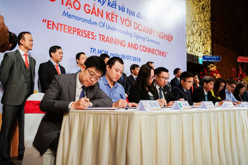 Các doanh nghiệp ký kết hoạt động trong các lĩnh vực tương ứng với các ngành đào tạo của Nhà trường như kế toán kiểm toán, chứng khoán, ngân hàng, truyền thông, ngoại ngữ, giáo dục, bất động sản, dịch vụ du lịch - nhà hàng - khách sạn, công nghệ thông tin, quản trị nhân lực,... Có thể kể đến những đại diện nổi bật như: Tập đoàn Savills, Công ty chứng khoán SSI, Công ty Vinpearl, Công ty TNHH Phần Mềm SS4U, Ngân hàng TMCP Bắc Á, Công ty Tư vấn – Kiểm toán Chuẩn Việt, Adecco Việt Nam, Khách Sạn Winsor Plaza (5 sao), DEK Technoligies (Úc), Ngân hàng Kiên Long, Công Ty TNHH Tư Vấn Phát triển Nguồn nhân lực Toàn cầu, Công ty cổ phần bất động sản GOLDEN LAND, Công ty Cổ phần MISA,...