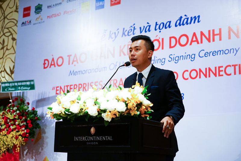Trong quá trình hợp tác, Nhà trường luôn trân trọng và mong muốn lắng nghe được những góp ý từ phía các doanh nghiệp về quá trình đào tạo của Nhà trường. Và buổi tọa đàm hôm nay là dịp để chúng tôi tiếp thu những ý kiến quý báu của các anh chị doanh nhân. Nhà trường cam kết sẽ nâng cao chất lượng đào tạo, đáp ứng nhu cầu của xã hội, của doanh nghiệp trong thời gian tới”.