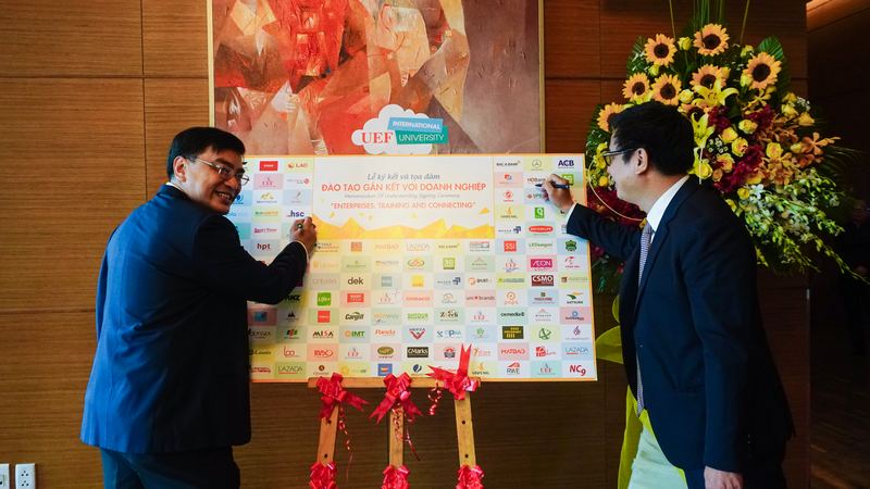 Có thể nói quá trình đào tạo gắn kết thực tiễn là một trong những yếu tố khẳng định thế mạnh và uy tín của UEF trong hệ thống giáo dục quốc gia. Năm nay, Lễ ký kết hợp tác với 27 doanh nghiệp lớn trên nhiều lĩnh vực khác nhau, gắn liền với các ngành học của trường được tổ chức nhằm mục tiêu nối dài điểm đến cho học kỳ thực tế, tăng cường kênh kiến tập, thực tập cũng như đảm bảo việc làm cho sinh viên.