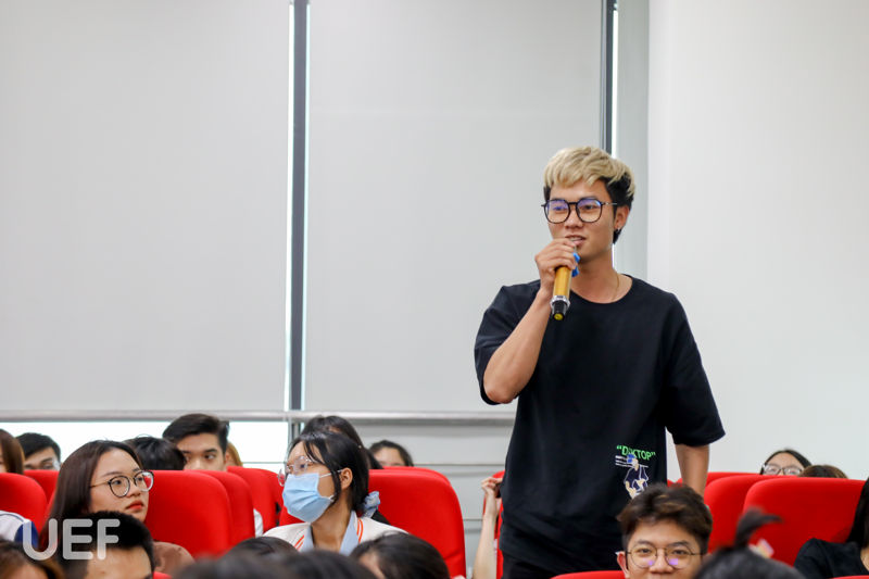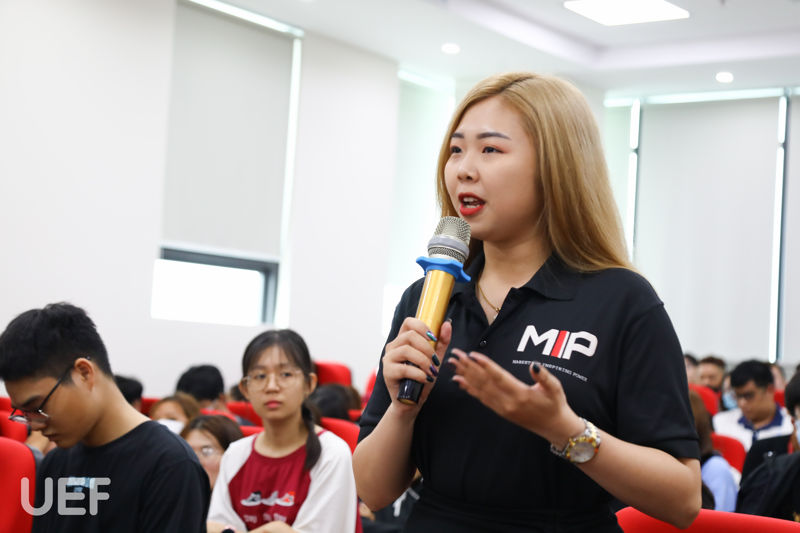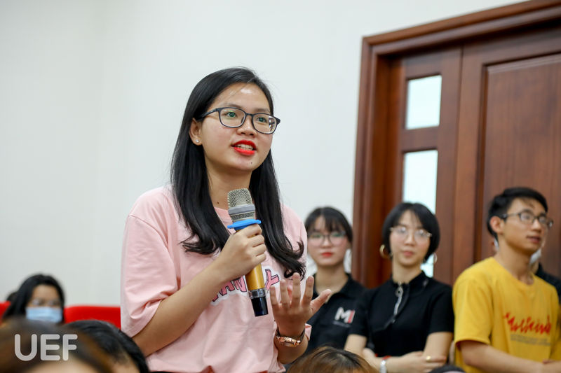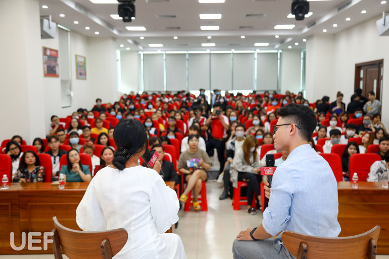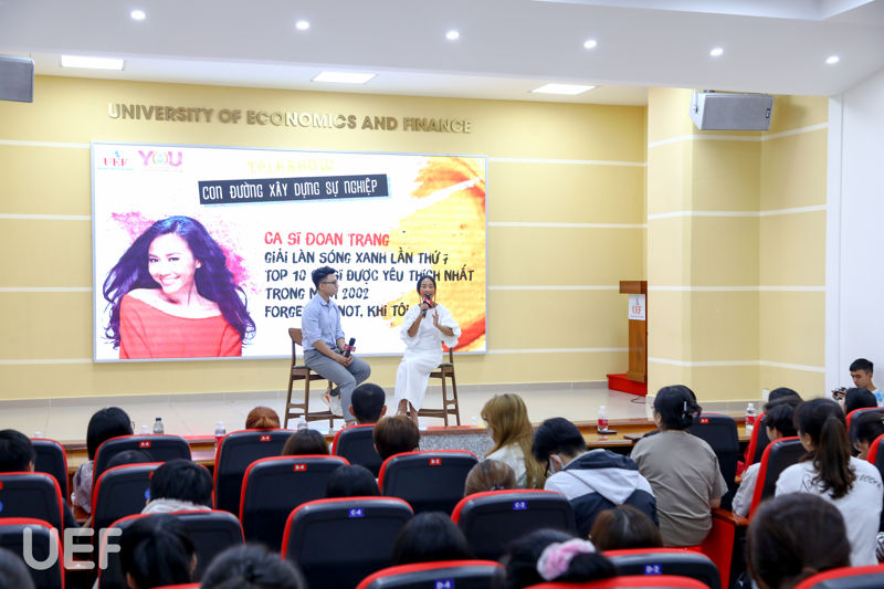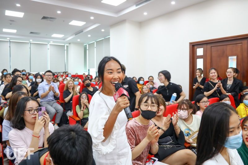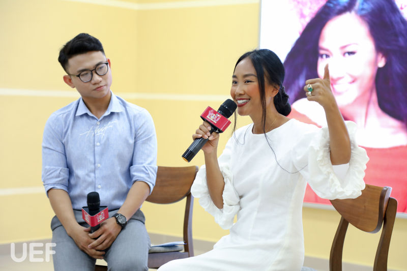 Trong chương trình, các bạn sinh viên còn được đặt câu hỏi trực tiếp cho Đoan Trang về việc xây dựng thương hiệu. Tin chắc rằng những chia sẻ của “Thỏi socola biết hát" đã giúp các bạn thí sinh nói riêng và sinh viên UEF nói chung có những kinh nghiệm, kỹ năng cần thiết để chinh phục cuộc thi và gắt hái thành công trong nghề nghiệp sau này.