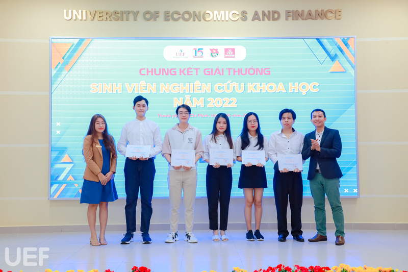 Sáng nay - 28/6, vòng Chung kết Giải thưởng Sinh viên nghiên cứu khoa học năm 2022 của UEF đã diễn ra thành công. Ban tổ chức đã trao 01 giải Nhất, 02 giải Nhì, 03 giải Ba và 04 giải Khuyến khích cho các đề tài tham dự.