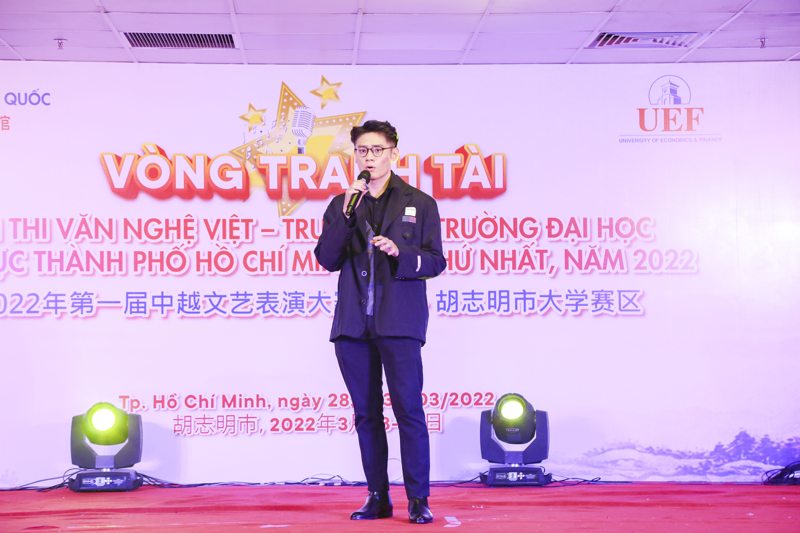 Chia sẻ trước giờ thi tài, TS. Nhan Cẩm Trí – Phó Hiệu trưởng UEF – Trưởng ban tổ chức Hội thi gửi lời khích lệ tinh thần các thí sinh: “Chúc cho các bạn thật tự tin để có được phần trình diễn thành công. Sau 3 đêm thi, Ban giám khảo dự kiến chọn ra 15 tiết mục trên tổng số 78 để trình diễn trong đêm Gala chung kết xếp hạng. Trong Gala này, Ban tổ chức sẽ đặt ra yêu cầu cao hơn về sân khấu, chất lượng trình diễn, trang phục, đội hình minh họa,… hứa hẹn mang đến những tác phẩm nghệ thuật mãn nhãn cho người xem”. Đại diện UEF cũng gửi lời cảm ơn đến Tổng Lãnh sự quán Trung Quốc tại TP.HCM đã tài trợ cho Hội thi, góp phần mang đến một sân chơi ý nghĩa cho sinh viên ngành Ngôn ngữ Trung Quốc nói riêng và những bạn trẻ yêu thích văn hóa, âm nhạc, ngôn ngữ Trung Hoa nói chung, hơn hết là thắt chặt tình hữu nghị giữa 2 quốc gia Việt Nam – Trung Quốc.