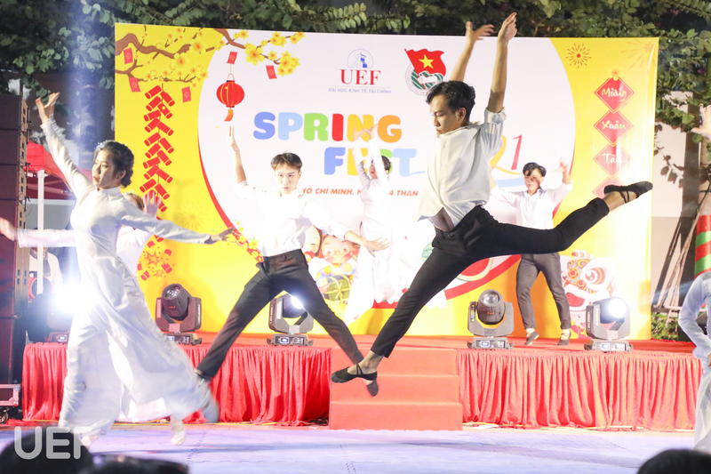 Song song với hoạt động “Lô tô show”, Chung kết cuộc thi nhảy Flashmob càng làm bùng nổ không khí Hội xuân UEF. 7 tiết mục được chuẩn bị chỉn chu về động tác, kỹ năng trình diễn và những bài hát mang âm hưởng của Tết.
