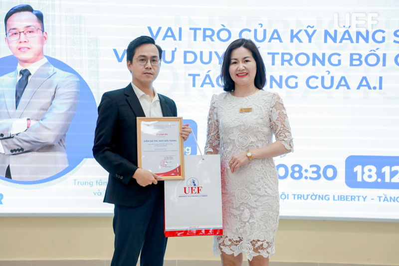 Đại diện UEF trao thư cảm ơn cho diễn giả Ngô Hữu Thống