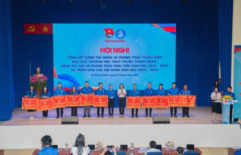 Sáng nay, Cờ thi đua của Thành đoàn cũng được trao cho đại diện UEF - ThS. Nguyễn Huỳnh Sinh - Bí thư Đoàn trường, Phó Trưởng phòng Công tác sinh viên tại Hội nghị tổng kết công tác Đoàn và phong trào thanh niên khu vực trường học trực thuộc Thành Đoàn, công tác Hội và phong trào sinh viên năm học 2022 - 2023 và triển khai các nội dung năm học 2023 -2024. Đoàn trường UEF lại tiếp tục ghi nhận một thành tích đầy rực rỡ vào đầu năm học mới.
