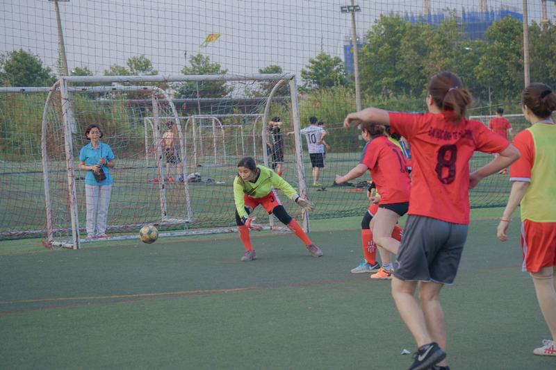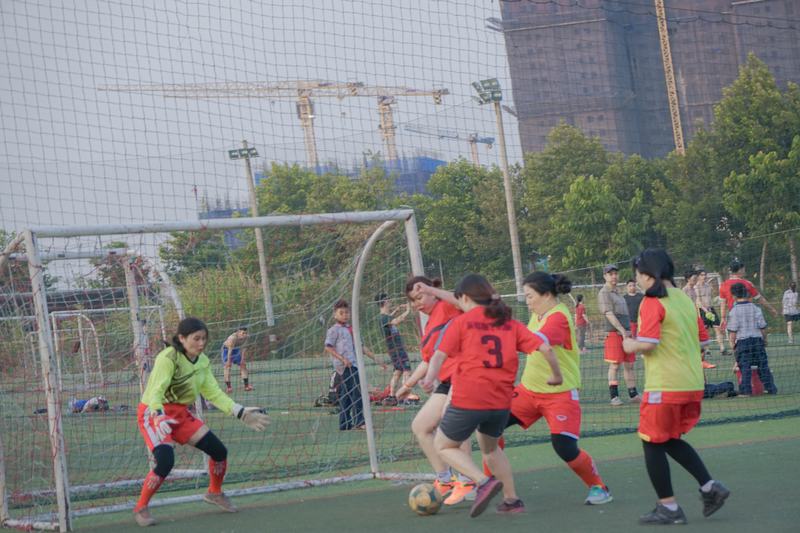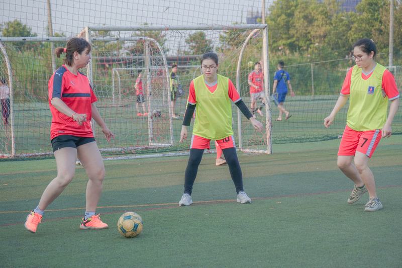 Diễn ra tại sân bóng đá nhân tạo Ngôi Sao (Bình Thạnh), trận đấu khai màn giữa hai đội UEF và HUFLIT đã cho thấy tinh thần thể thao của các quý cô cũng không hề kém cạnh với các nam cầu thủ.