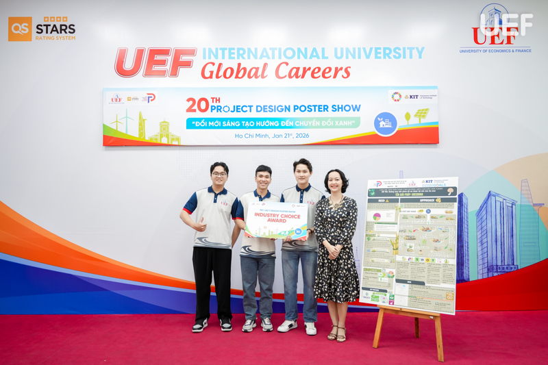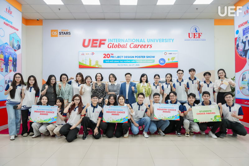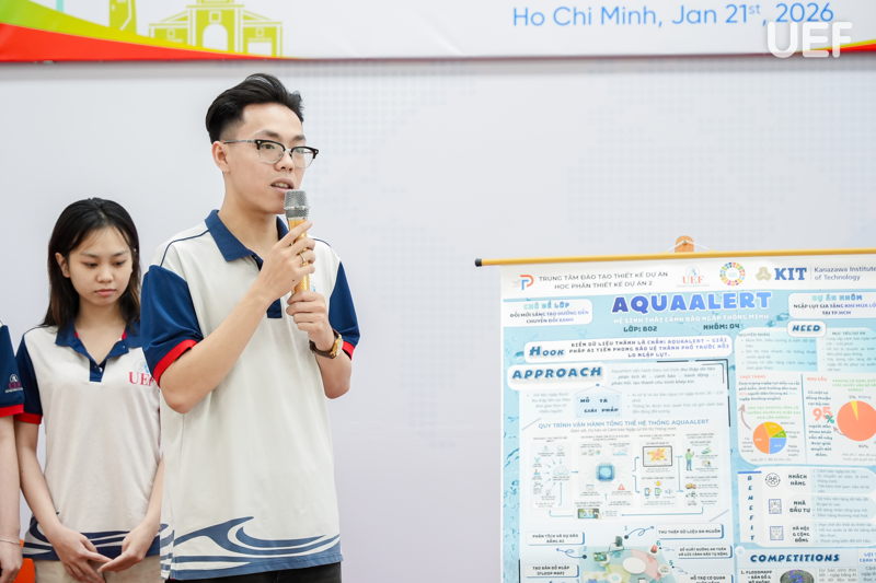 Chiều ngày 21/1, Trung tâm Đào tạo thiết kế dự án UEF đã tổ chức Phiên công bố poster học phần Project Design 2, học kỳ 1B năm học 2025-2026, với chủ đề “Đổi mới sáng tạo hướng đến chuyển đổi xanh”. Sự kiện là không gian học thuật mở, nơi sinh viên giới thiệu kết quả học tập, trình bày tư duy thiết kế và đề xuất các giải pháp sáng tạo gắn với những vấn đề môi trường và phát triển bền vững.