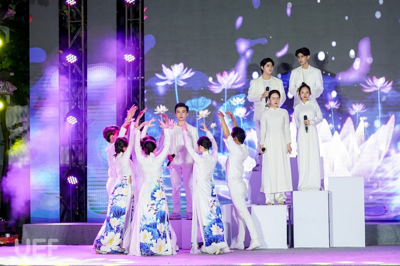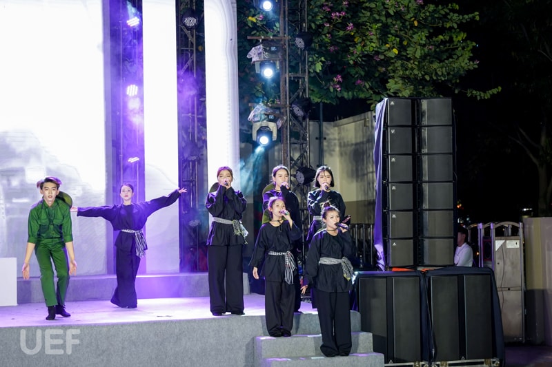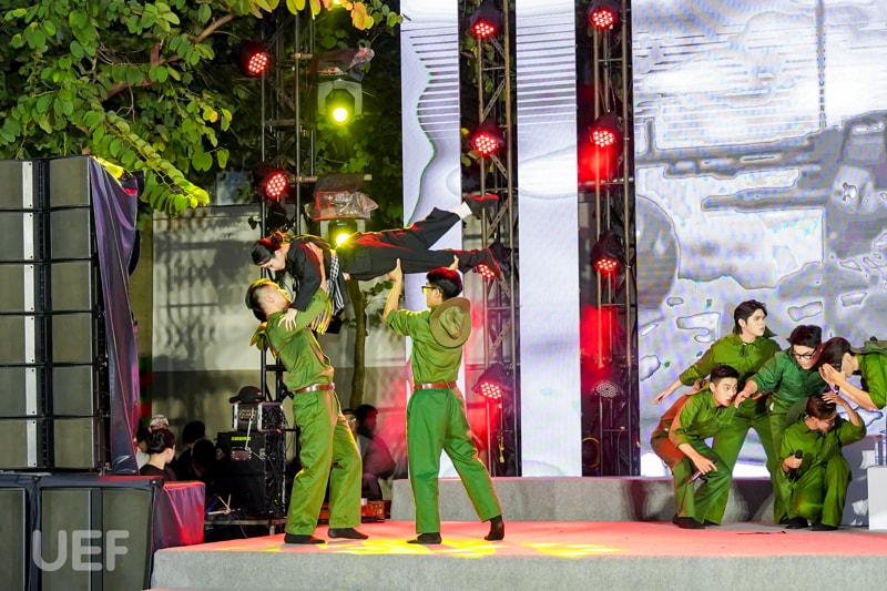 Phần trình diễn được đầu tư chỉn chu về bối cảnh, trang phục, đạo cụ,... Trong đó, UEFers làm bổi bật chủ đề dự thi bằng sự kết hợp nhuần nhuyễn giữa giọng hát, vũ đạo và cách kể những câu chuyện tưởng chừng như xa xôi, khô khan bằng lối dẫn dắt gần gũi, tự nhiên và mang góc nhìn tuổi trẻ hiện đại.