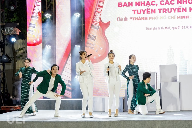 Bám sát tinh thần cuộc thi là thể hiện tình cảm của người trẻ đối với sự phát triển của thành phố mang tên Bác trong bề dày lịch sử và trong hiện thực hôm nay, đội thi UEF đã mang đến tiết mục biểu diễn với các giai điệu quen thuộc: Lá xanh, Đoàn vệ quốc quân, Tiến về Sài Gòn, Bão nổi lên rồi, Giải phóng miền Nam, Hát về thành phố hôm nay,... Qua đó, các bạn thể hiện quyết tâm đóng góp sức trẻ cho sự phát triển chung của TP.HCM.