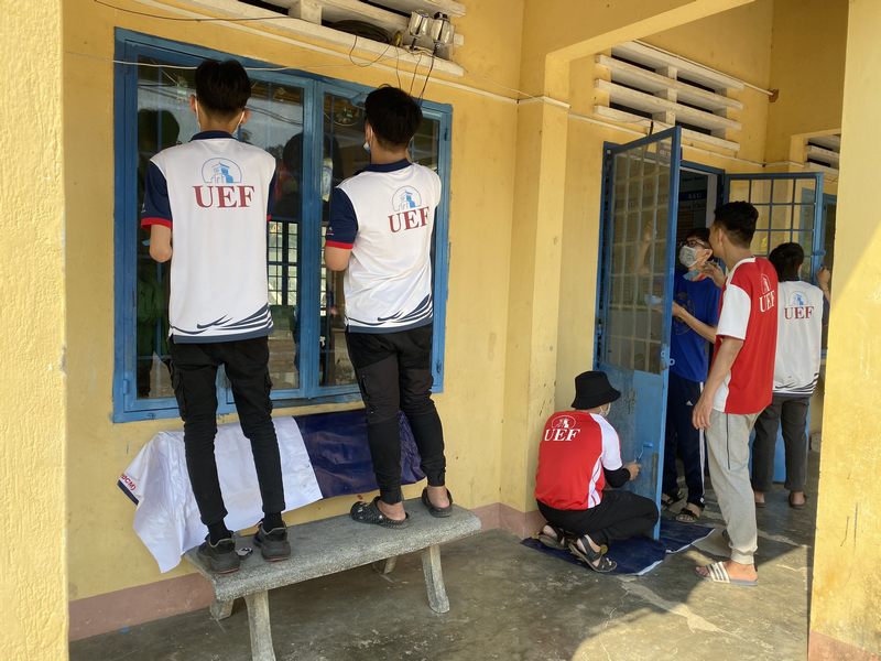 Bên cạnh đó, sinh viên UEF cũng đã chung tay góp phần xây dựng an sinh xã hội tại địa phương. Các bạn cùng nhau tổ chức dọn dẹp, sơn sửa trường học, tổ chức gian hàng trò chơi, gian hàng ẩm thực cho các em học sinh trường tiểu học xã Mỹ Thạnh.