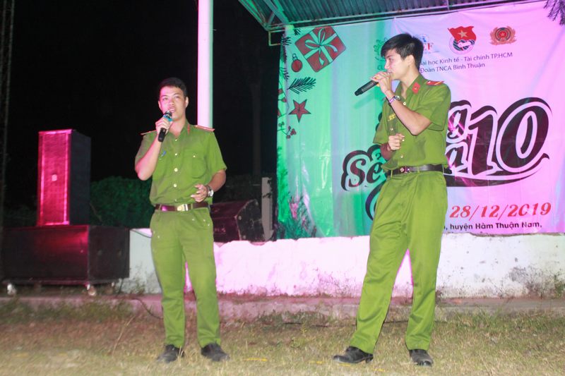 Đặc biệt, các bạn còn dụng công tổ chức Đêm giao lưu văn nghệ với rất nhiều tiết mục đặc sắc. Đáng chú ý là những tiết mục đóng góp của các em học sinh trường Tiểu học Mỹ Thạnh và các chiến sĩ trong Cụm 3 Đoàn TN Công an tỉnh Bình Thuận.
