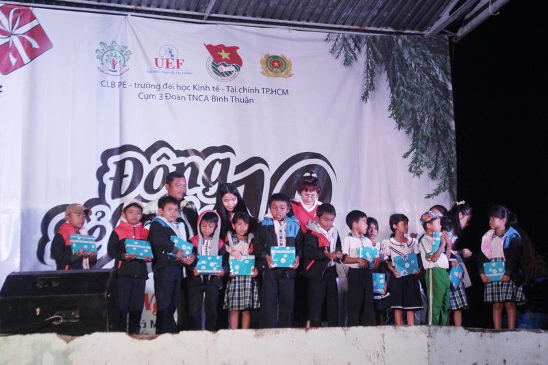 Không chỉ mang đến tiếng cười, tinh thần lạc quan mà chương trình còn gửi đến các hộ gia đình và các em nhỏ nơi đây những món quà thiết thực. Tất cả là đều là tấm lòng của sinh viên UEF cùng quyên góp và vận động tài trợ. Trong đó có 100 suất quà cho các hộ gia đình khó khăn, 106 phần quà cho các em nhỏ vượt khó. Đặc biệt, Ban tổ chức còn dành tặng 10 suất học bổng cho các em có ý thức vươn lên trong học tập dù hoàn cảnh còn nhiều vất vả.