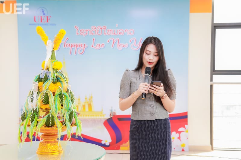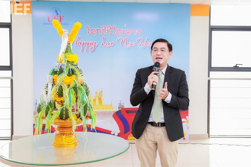 Phát biểu trong chương trình, TS. Nhan Cẩm Trí cho biết: “Tết cổ truyền của mỗi dân tộc đều rất thiêng liêng, mang ý nghĩa của sự sum vầy, hạnh phúc. Trong không khí ấm cúng của ngày hôm nay, hi vọng một phần nào giúp các bạn sinh viên Lào đang học tập tại UEF sẽ cảm thấy ấm lòng và gợi nhớ về quê hương. Rất vui mừng khi trong năm vừa qua, một số bạn du học sinh ở đây đã được thành ủy khen thưởng. Mong rằng trong năm mới, các bạn sẽ được bình an, hạnh phúc và đạt nhiều kết quả cao trong học tập”.