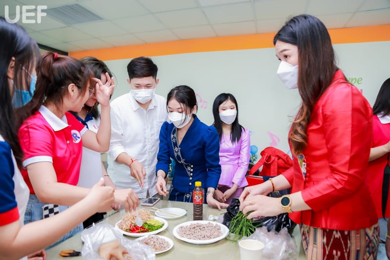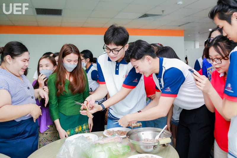 Với môi trường đại học quốc tế đề cao tính đa dạng văn hóa, bên cạnh sinh viên trong nước, UEF còn là địa chỉ thu hút các du học sinh nước ngoài, đặc biệt là quốc gia láng giềng - Lào. Không chỉ tạo mọi điều kiện cho quá trình học tập chuyên môn, Nhà UEF còn quan tâm đến đời sống tinh thần cho các bạn sinh viên quốc tế xa nhà.