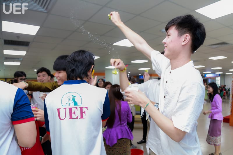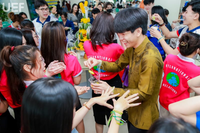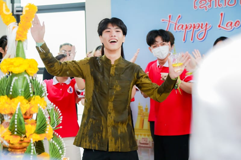 Bên cạnh đó, những nghi thức văn hóa đặc sắc như té nước, cột chỉ tay cũng được thực hiện. Theo quan niệm của người dân Lào, những nghi thức này sẽ giúp gột rửa điều xấu, bệnh tật và cầu chúc năm mới mạnh khỏe, may mắn. Kèm với đó như là một lời chúc bình an và thuận lợi đến quý thầy, cô và các bạn UEFers.