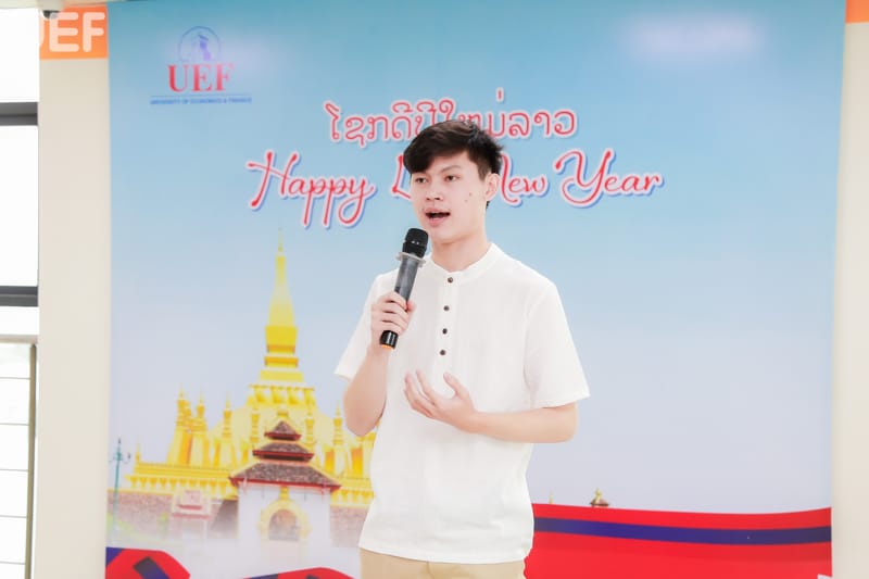 Nhân dịp đặc biệt này, bạn Phainam Phiouvanna cũng không giấu được cảm xúc của mình: “Hôm nay là ngày đầu tiên trong Tết Lào, tụi em rất cảm ơn quý thầy, cô UEF lúc nào cũng đã quan tâm đến du học sinh. Chúc các thầy, cô sức khỏe, may mắn. Hẹn khi nào có dịp sẽ được mời các thầy, cô cùng các bạn đến Lào để biết thêm những phong tục ý nghĩa trong ngày Tết cổ truyền này” - Phainam bày tỏ.