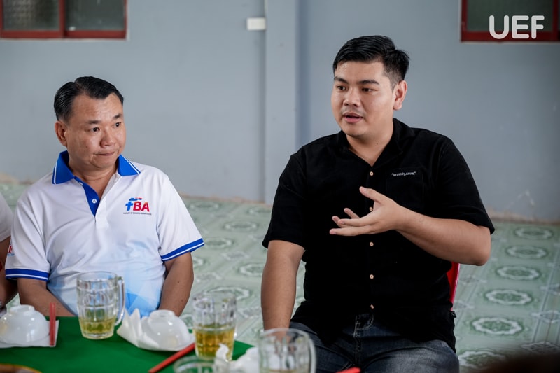 Đón tiếp đoàn tham quan là anh Hồ Quý Trọng - Nhà sáng lập Công ty TNHH Tô tượng Smilie, cựu sinh viên khóa 2018 Khoa Quản trị kinh doanh UEF, đồng thời là Mentor của chương trình FBA Alumni Mentoring.