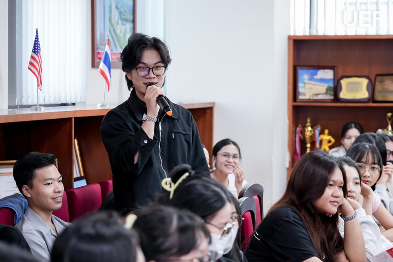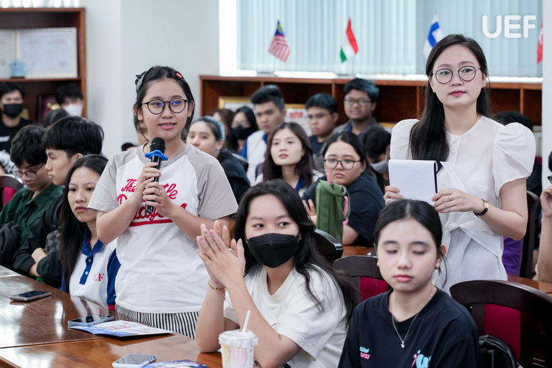 Ghi nhận tại hội thảo, sinh viên UEF đặt nhiều câu hỏi liên quan đến cơ hội nghề nghiệp tại Trung tâm Tài chính quốc tế, định hướng ngành nghề phù hợp với năng lực, cũng như phương pháp học tập và lộ trình chứng chỉ kế toán - kiểm toán quốc tế. Các diễn giả lần lượt giải đáp, đưa ra những góc nhìn thực tế, giúp sinh viên hiểu rõ con đường mà mình có thể theo đuổi trong tương lai.