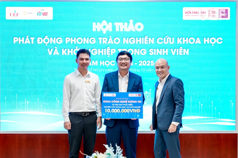 Trong bối cảnh phát triển nhanh chóng của công nghệ thông tin, việc trang bị cho sinh viên những kiến thức và kỹ năng cần thiết để tham gia vào quá trình nghiên cứu khoa học và khởi nghiệp ngày càng trở nên quan trọng. Nhằm khuyến khích sinh viên tham gia vào các hoạt động nghiên cứu khoa học và phát triển tinh thần khởi nghiệp, chiều ngày 18/10, Khoa Công nghệ thông tin đã tổ chức Hội thảo phát động nghiên cứu khoa học và khởi nghiệp cho sinh viên năm học 2024-2025. Đây là cơ hội để UEFers gặp gỡ, trao đổi, học hỏi kinh nghiệm từ các giảng viên, nhà nghiên cứu và các chuyên gia hàng đầu.