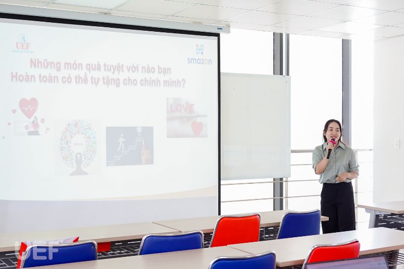 Để UEFers hiểu hơn về tình trạng tâm lý của mình, chương trình đã mang đến bài test đánh giá Lo âu - Trầm cảm - Stress thuộc công ty Smazon. Diễn giả cũng đưa ra các lời khuyên phù hợp, giúp các bạn sinh viên củng cố tâm lý và hiểu hơn về thế giới nội tâm bên trong mình.