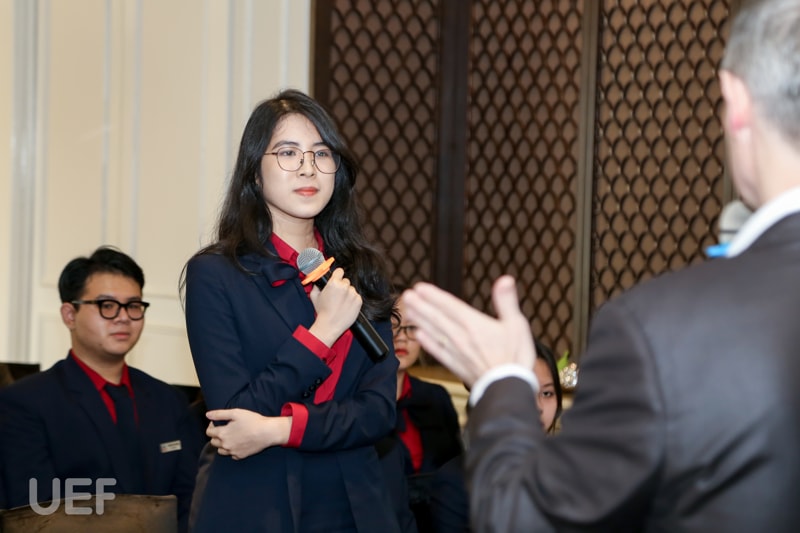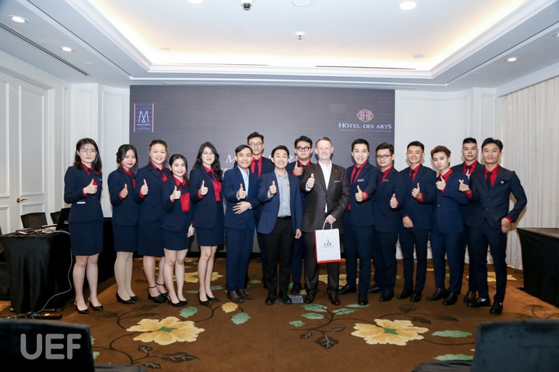 Ông Trần Quang Thức cũng ngỏ ý sẽ hỗ trợ cho những bạn sinh viên Nhà UEF làm việc và thực tập tại Hotel Des Arts Saigon. Điều kiện và lộ trình làm việc cho từng bộ phận cũng được phía ban lãnh đạo chia sẻ kỹ càng và tận tâm.