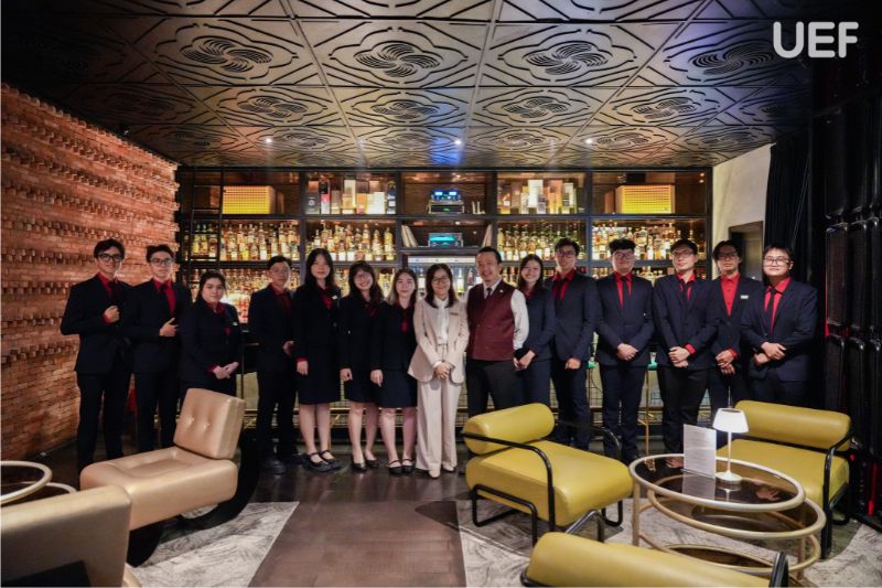 Buổi trải nghiệm khép lại bằng phần trao đổi và hỏi đáp sôi nổi, UEFers đã chủ động đặt câu hỏi xoay quanh nguyên liệu, kỹ năng đón tiếp, xử lý tình huống và định hướng phát triển trong ngành dịch vụ cao cấp. Những chia sẻ từ chuyên gia mang đến kiến thức thực tiễn và truyền cảm hứng mạnh mẽ về thái độ làm nghề nghiêm túc cùng tinh thần cầu tiến, yếu tố quan trọng hỗ trợ các bạn tự tin bước vào thị trường lao động trong tương lai.