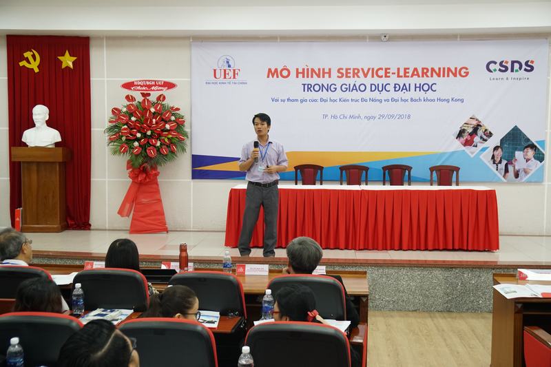 Sự kiện này có sự xuất hiện, chia sẻ của TS. Stephen Chan – Người sáng lập, Giám đốc Trung tâm Service Learning Đại học Bách Khoa HongKong, ông Đôn Tuấn Phương – Giám đốc Trung tâm phát triển bền vững CSDS, ThS – Kiến trúc sư Phan Trần Kiều Trang – Giám đốc Trung tâm Học cùng cộng đồng Đại học Kiến trúc Đà Nẵng, Lãnh đạo Nhà trường, Trung tâm Service Learning, đại diện của gần 30 trường đại học, cao đẳng trên cả nước cùng đông đảo sinh viên UEF.