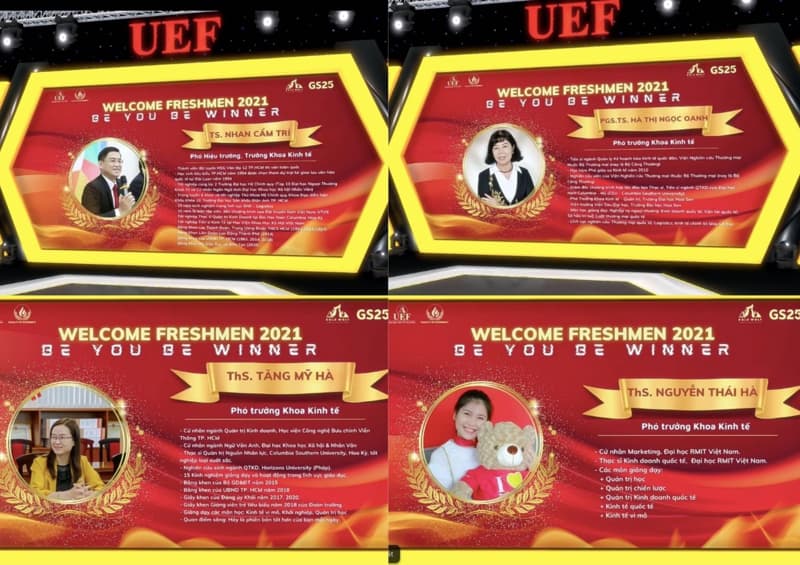 Đại diện khoa Kinh tế, TS. Nhan Cẩm Trí gửi lời chúc mừng và chào đón thế hệ thành viên mới: “Thầy xin thay mặt Ban chủ nhiệm và các giảng viên của khoa Kinh tế hân hoan chào mừng các bạn tân sinh viên khóa 2021. Với chủ đề “Be you, Be winners", thầy mong muốn rằng các em hãy là chính mình với những nét độc đáo, qua 4 năm học tập và rèn luyện dưới mái trường UEF, với sự dẫn dắt tận tụy yêu thương của các thầy cô, thầy tin rằng các bạn sẽ là những người chiến thắng”.