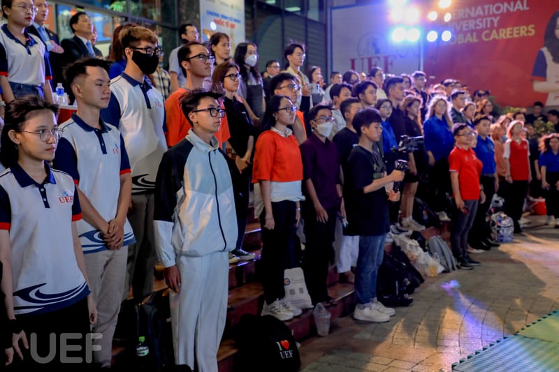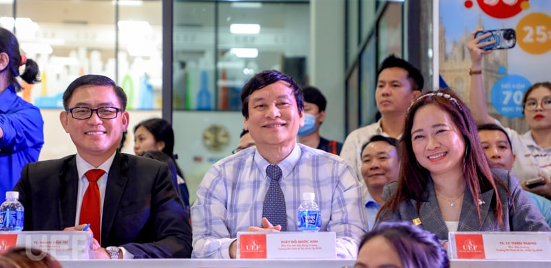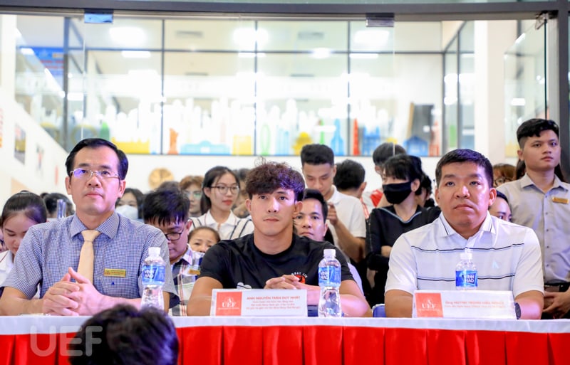 Về phía Nhà trường có sự tham dự của thầy Đỗ Quốc Anh - Phó Chủ tịch Hội đồng trường; TS. Nhan Cẩm Trí - Phó Hiệu trưởng; TS. Hồ Viễn Phương - Phó Hiệu trưởng, Chánh Văn phòng trường, Chủ tịch Công đoàn trường; TS. Lý Thiên Trang - Phó Hiệu trưởng; ThS. Phạm Doãn Nguyên - Phó Hiệu trưởng cùng thầy, cô đại diện các đơn vị và đông đảo sinh viên UEF.