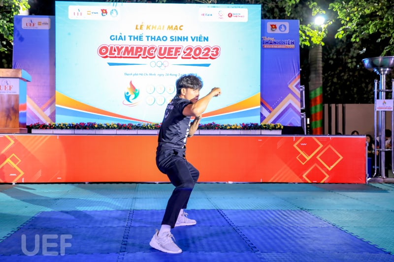 Lễ khai mạc Olympic năm nay của UEF trở nên hấp dẫn hơn khi có sự xuất hiện, giao lưu của "huyền thoại" Muay Thái Nguyễn Trần Duy Nhất. Các bạn sinh viên, vận động viên đã có cơ hội lắng nghe những chia sẻ thú vị về bộ môn Muay Thái và được xem anh trực tiếp thị phạm những động tác cơ bản.