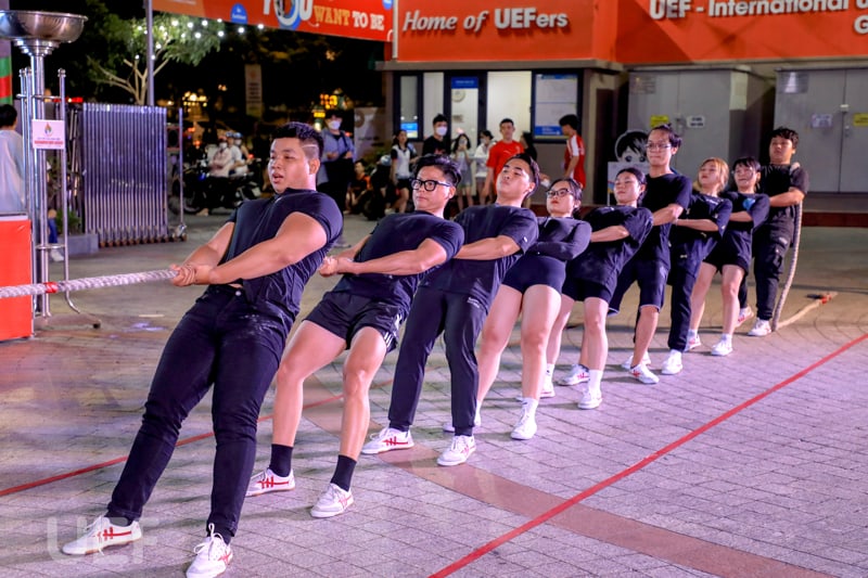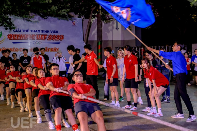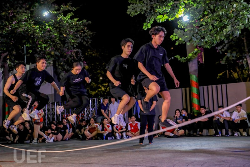 Chiều tối qua - 24/3, trong khuôn khổ ngày hội Sức trẻ, khuôn viên Nhà UEF đã được khuấy động với buổi Lễ khai mạc Giải thể thao sinh viên - Olympic UEF 2023. Đây là sự kiện thể thao lớn nhất năm của Nhà UEF với sự tham gia hùng hậu của sinh viên các Khoa, Viện, CLB. Sân chơi vừa là cơ hội để các bạn trẻ thể hiện tài năng, rèn luyện sức khỏe vừa tạo điều kiện để tăng cường tình đoàn kết trong cộng đồng sinh viên Nhà trường. Ngay sau chương trình khai mạc, các thành viên Nhà UEF đã có những giây phút mãn nhãn với màn tranh tài ở 2 bộ môn nhảy dây và kéo co.
