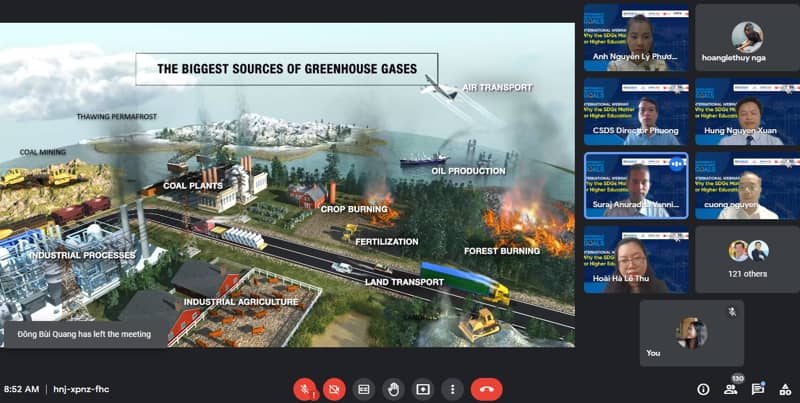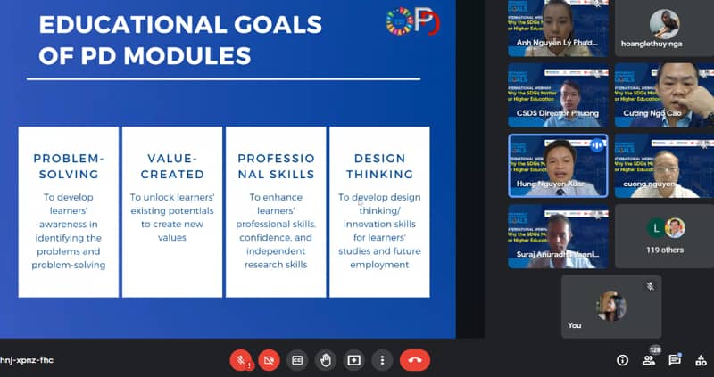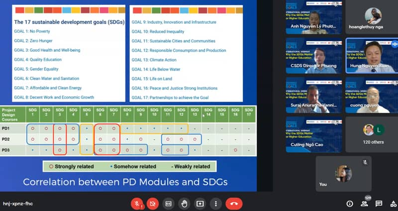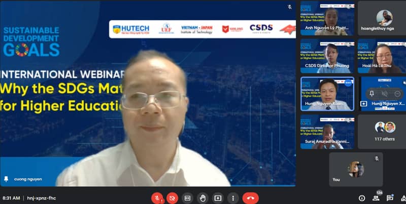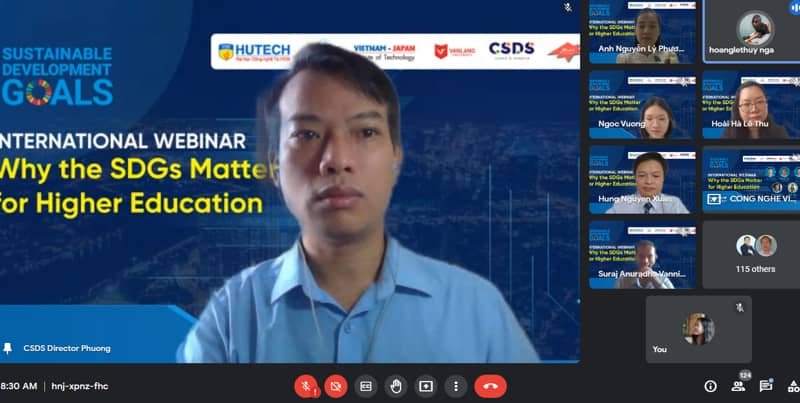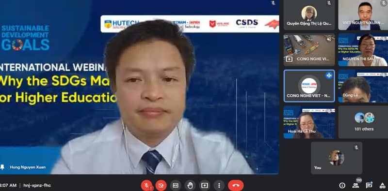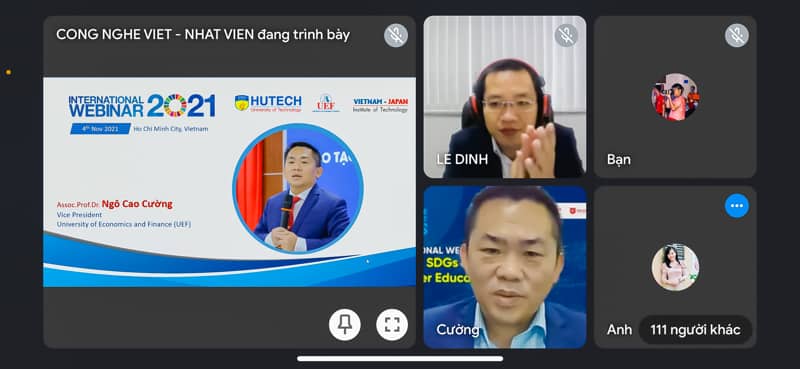Sáng 4/11, Trung tâm Đào tạo thiết kế dự án UEF phối hợp Viện Công nghệ Việt – Nhật (VJIT), Trường Đại học Công nghệ TP.HCM (HUTECH) và đại diện chương trình Movers thuộc Chương trình phát triển Liên Hợp Quốc (UNDP) tại Việt Nam thực hiện webinar quốc tế “Why the SDGs Matter for Higher Education”, tạo cơ hội cho các giảng viên cũng như sinh viên Nhà UEF tìm hiểu khai niệm “SDGs - Mục tiêu phát triển bền vững” và vai trò của SDGs trong nền giáo dục đại học.