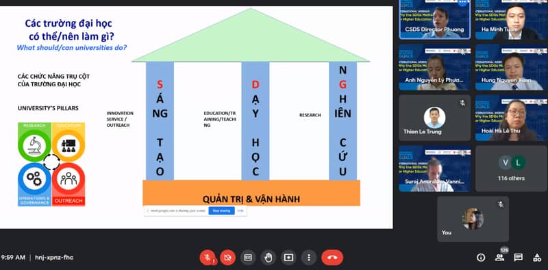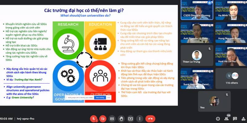Mối liên hệ giữa các trường đại học và SDGs cũng như điều các trường cần làm cũng được chia sẻ