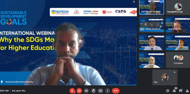 Trong khi đó, TS. Suraj A. Vanniarachy đã phân tích về ảnh hưởng của SDGs vào sự phát triển kinh tế xã hội và tầm quan trọng của SDGs trong nền giáo dục đại học.